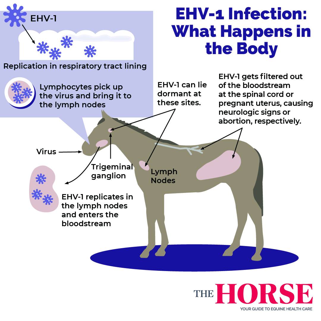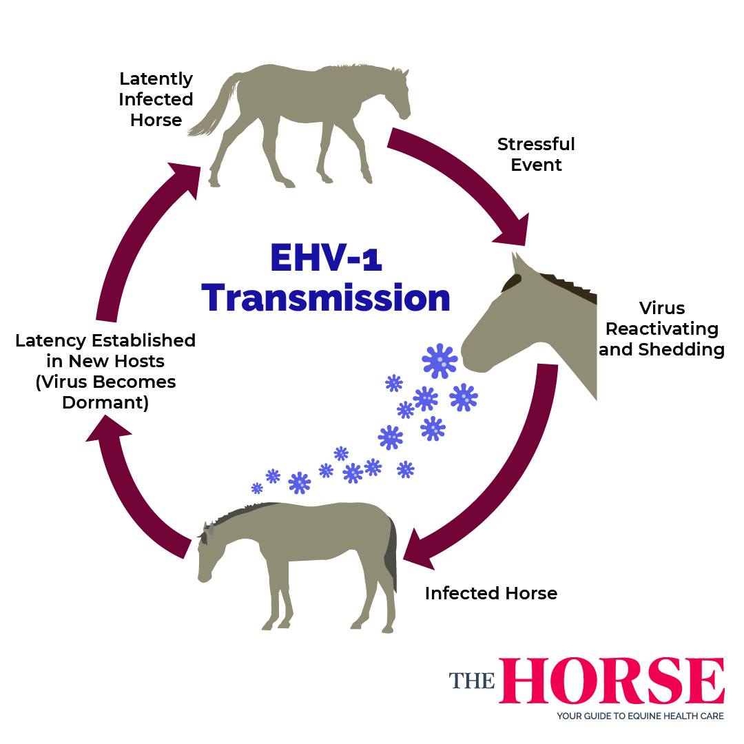 Once infected, horses become lifelong carriers, and stress can trigger them to shed the virus again.